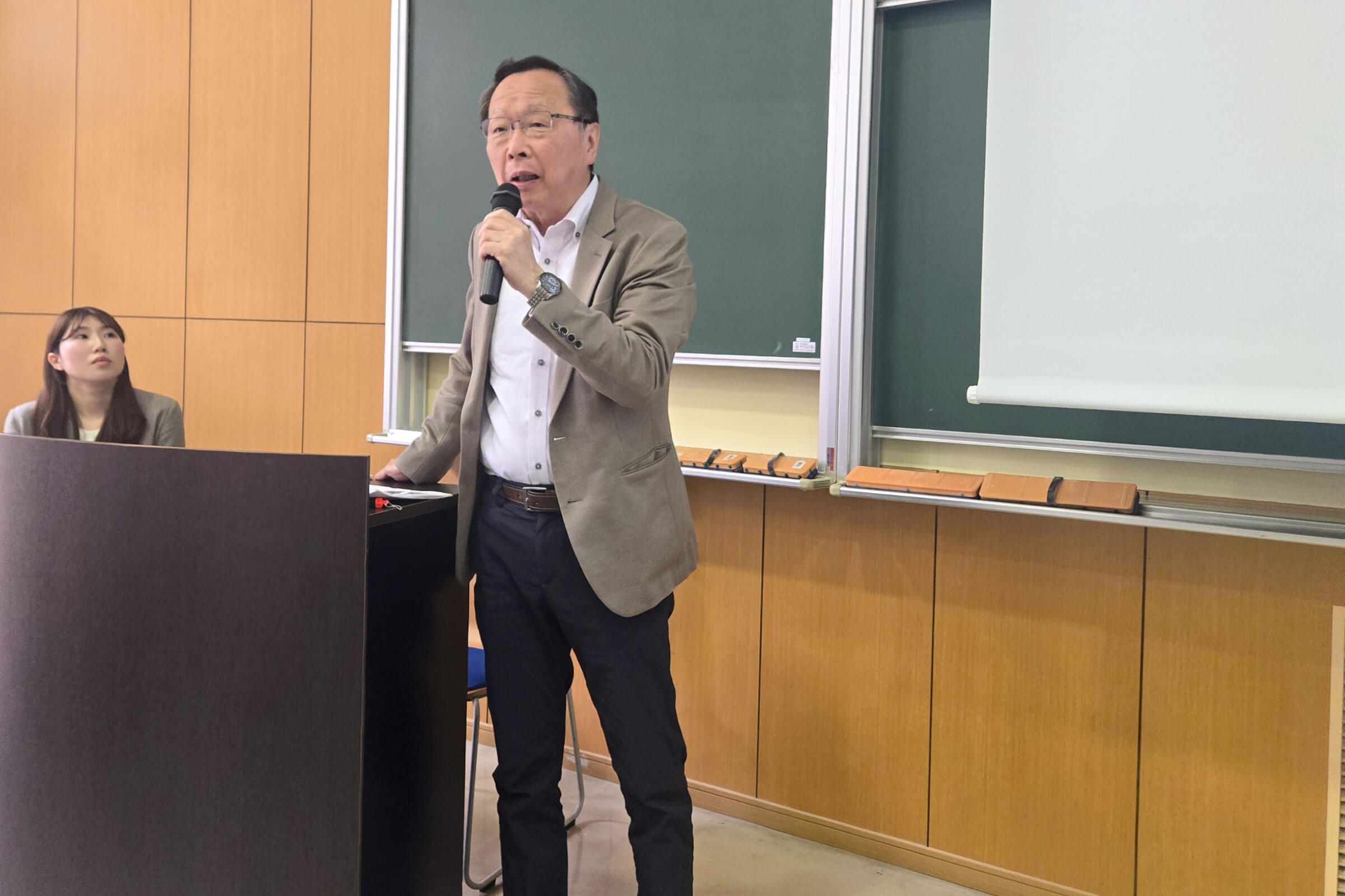 佐賀大学で講演する戸上会長