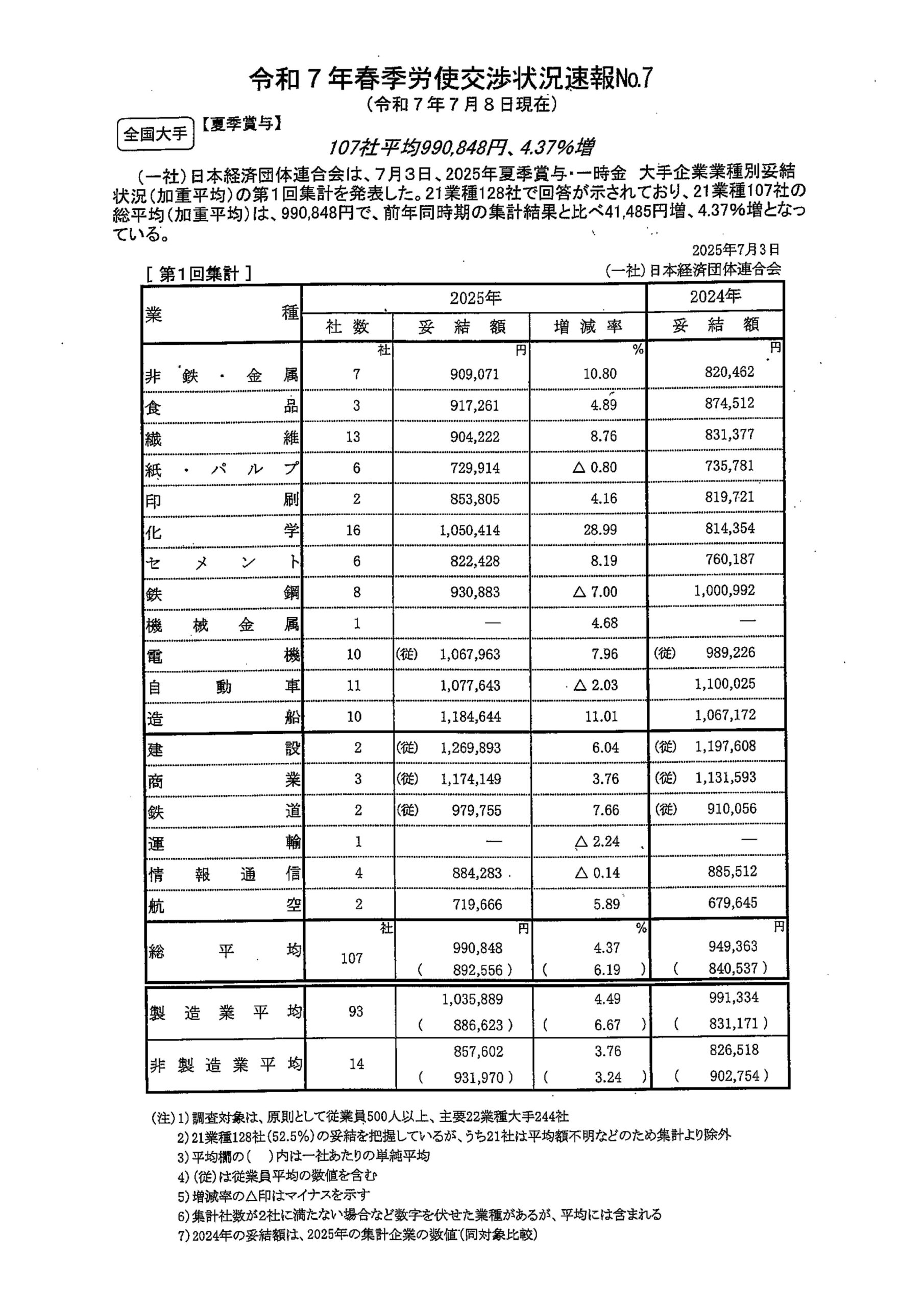 春季労使交渉状況速報 -